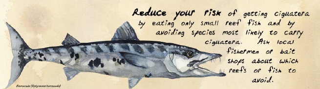 Just a few weeks ago, an innovative approach at understanding ciguatera in relation to fish ecology was published in Science of the Total Environment (O’Toole et al. 2012). They associated fish movements (using acoustic telemetry) with the accumulation of ciguatoxins in great barracuda (Sphyraena barracuda). Their results suggest that those fish that were less mobile and stayed within relatively small areas on the western side of Cape Eleuthera had higher concentrations of ciguatoxins.
