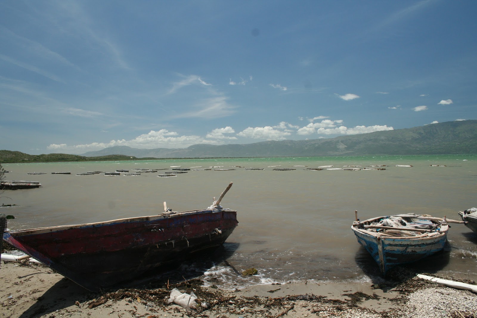 Several worn cages—all about 4 feet tall, wide, and deep—lie in the background ready to be cleaned up or re-purposed for parts. Several yards into the lake, rows of cages bob up and down, each one undoubtedly swarming inside with over 2000 tilapia. These villagers will feed the caged fish up to 3 times each day until they have reached about 1 pound. Then, Val will come back and buy the majority of the fish and return them to his hatchery where they will be processed and sold throughout Haiti. For their work, these villagers can make over $1,000 per year—still a relatively humble annual income to most, but a small fortune to those with nothing, not to mention the sense of pride the fishermen get from the hard work and means to send their kids to school and the doctor.
