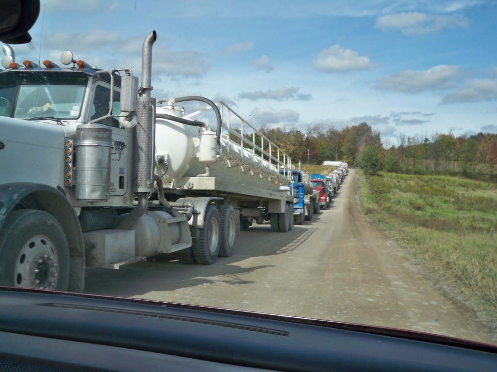 | Millions of gallons of water are pumped or trucked to the fracking site. |