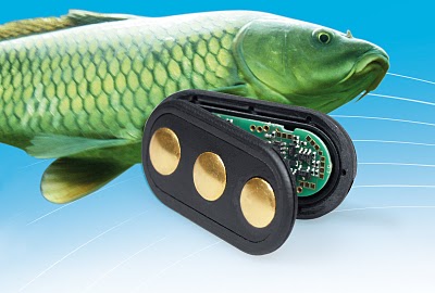 Microsensor with nanomaterials used in aquaculture under the skin of fish to wirelessly monitor and diagnose the health of fish (source: http://nanopatentsandinnovations.blogspot.com/2010/07/fischfit-monitoring-microchips-under.html)