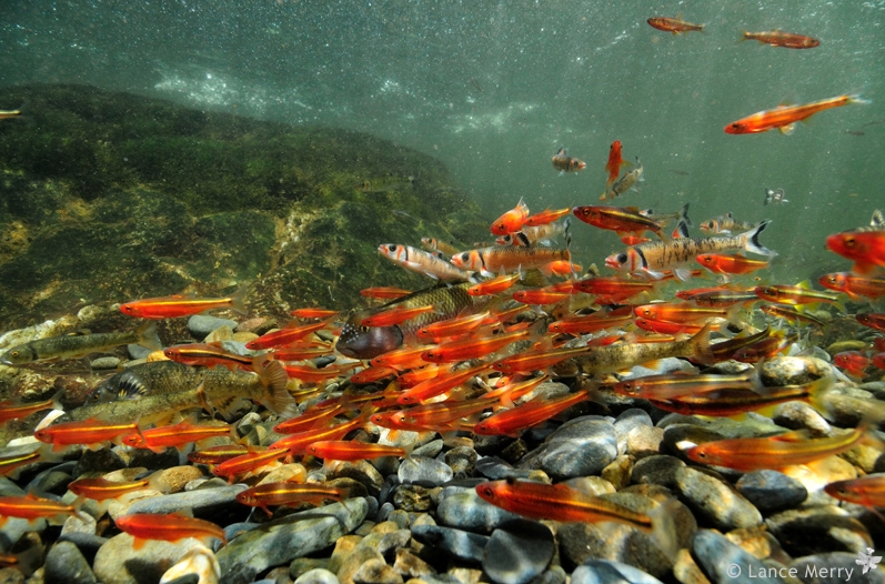 This video demonstrates the diversity of fish that depend on Chub nests. (Lance Merry)