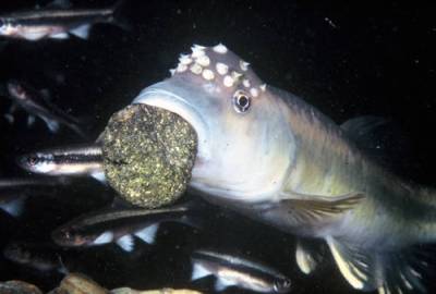 | Bluehead chubs carry stones to construct nests. (William Roston, withinourwaters.com) |