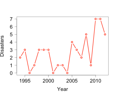 | Number of NOAA declared fishery disasters since 1994. |