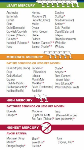 | Recommendations from the Natural Resources Defense Council. Get the complete card from the link below. Source: http://www.nrdc.org/health/effects/mercury/walletcard.PDF |