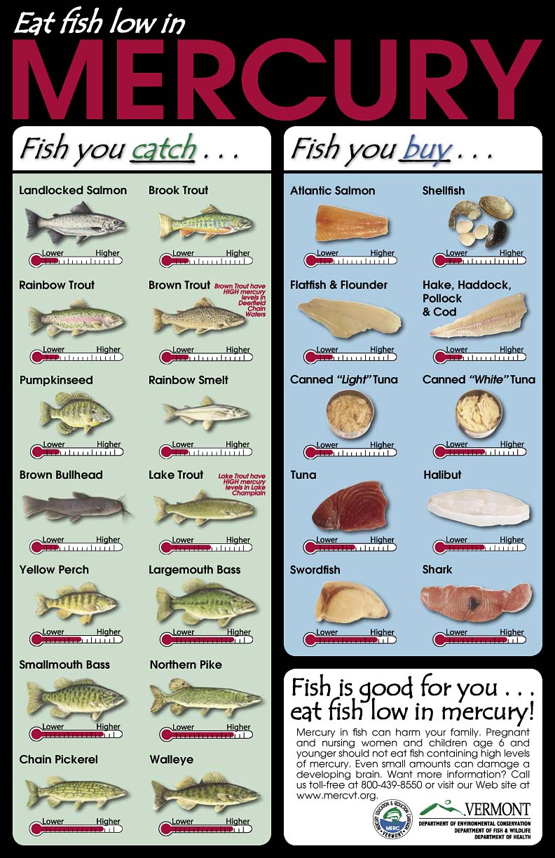 | Recommendations from Vermont Department of Environmental Conservation, Department of Fish and Wildlife, and Department of Health. Sources: http://www.mercvt.org/fish/index.htm |