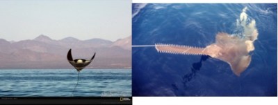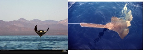 It doesn’t have to be “Great White” Shark Week! A number of closely-related rays are impressive and charismatic, like this breaching Manta (left, Credit: Brian Skerry, National Geographic) and Smalltooth Sawfish (right, Credit: Tobey Curtis, FLMNH). These remarkable species are considered to have much higher conservation concerns than White Sharks.