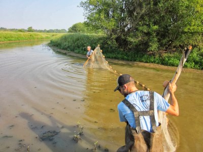 It’s more likely to find a fisheries biologist pulling a seine through a muddy farm ditch with 95-degree water.  Photo: Lindsey Lewis, US Fish and Wildlife Service.