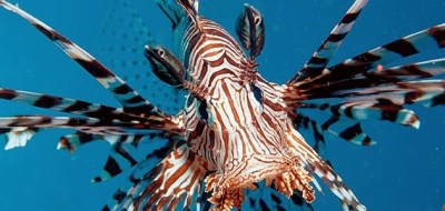 3. Lionfish were thought to be the most venomous fish until recent years when stonefish stole the title. These conspicuous fish have venomous dorsal, anal, and pelvic spines covered by a loose sheath that moves down and compresses venom glands when the spine punctures tissue. A sting from these fish can cause extreme pain, swelling, and in very severe cases, cardiovascular collapse. Most lionfish naturally reside in the Indo-Pacific but they have become an invasive species in recent years; most notably along the Atlantic coast of the United States where they are having a major impact on Atlantic coral-reef communities. Lionfish were likely introduced along the Atlantic coast through aquarium releases.