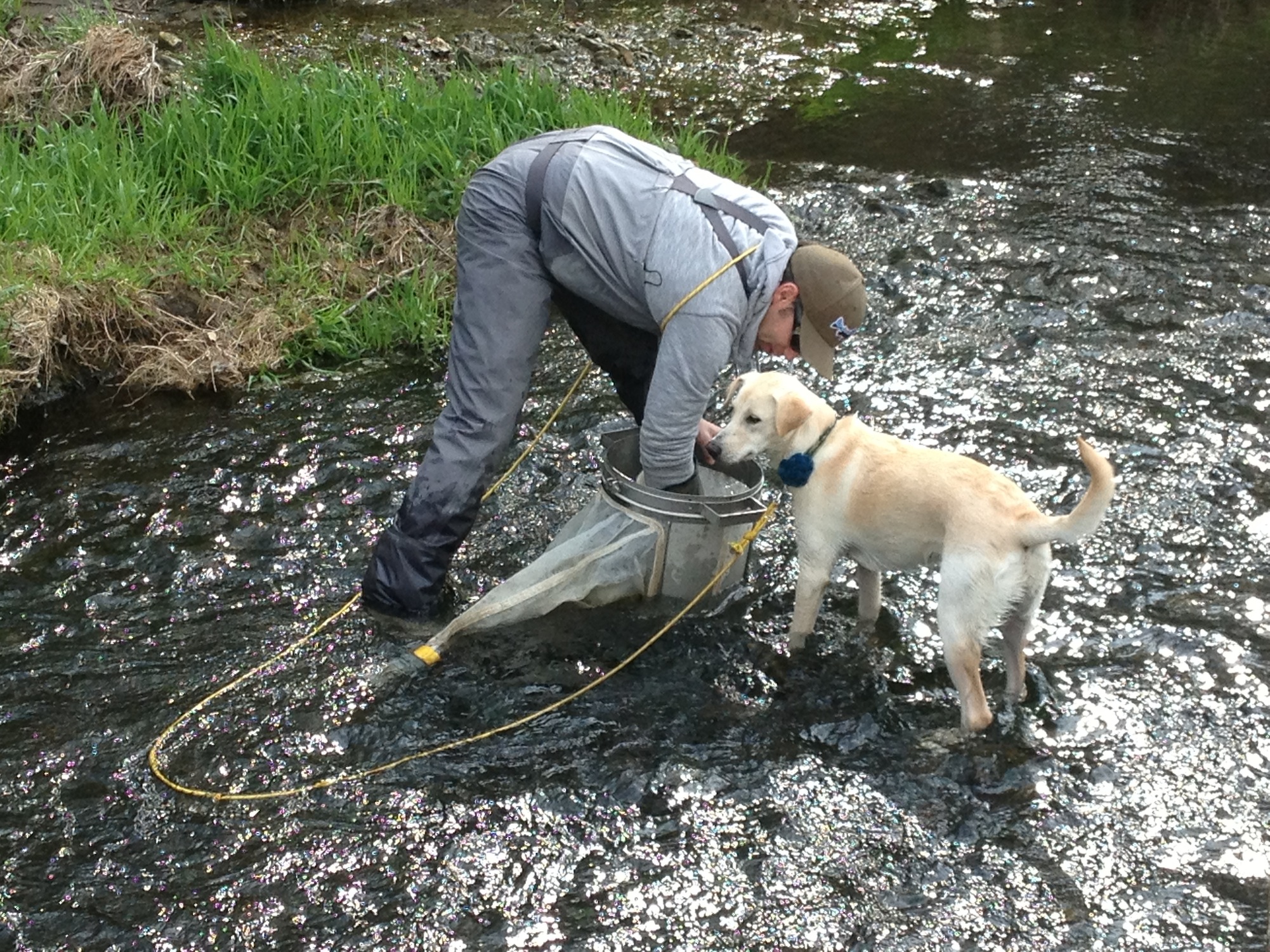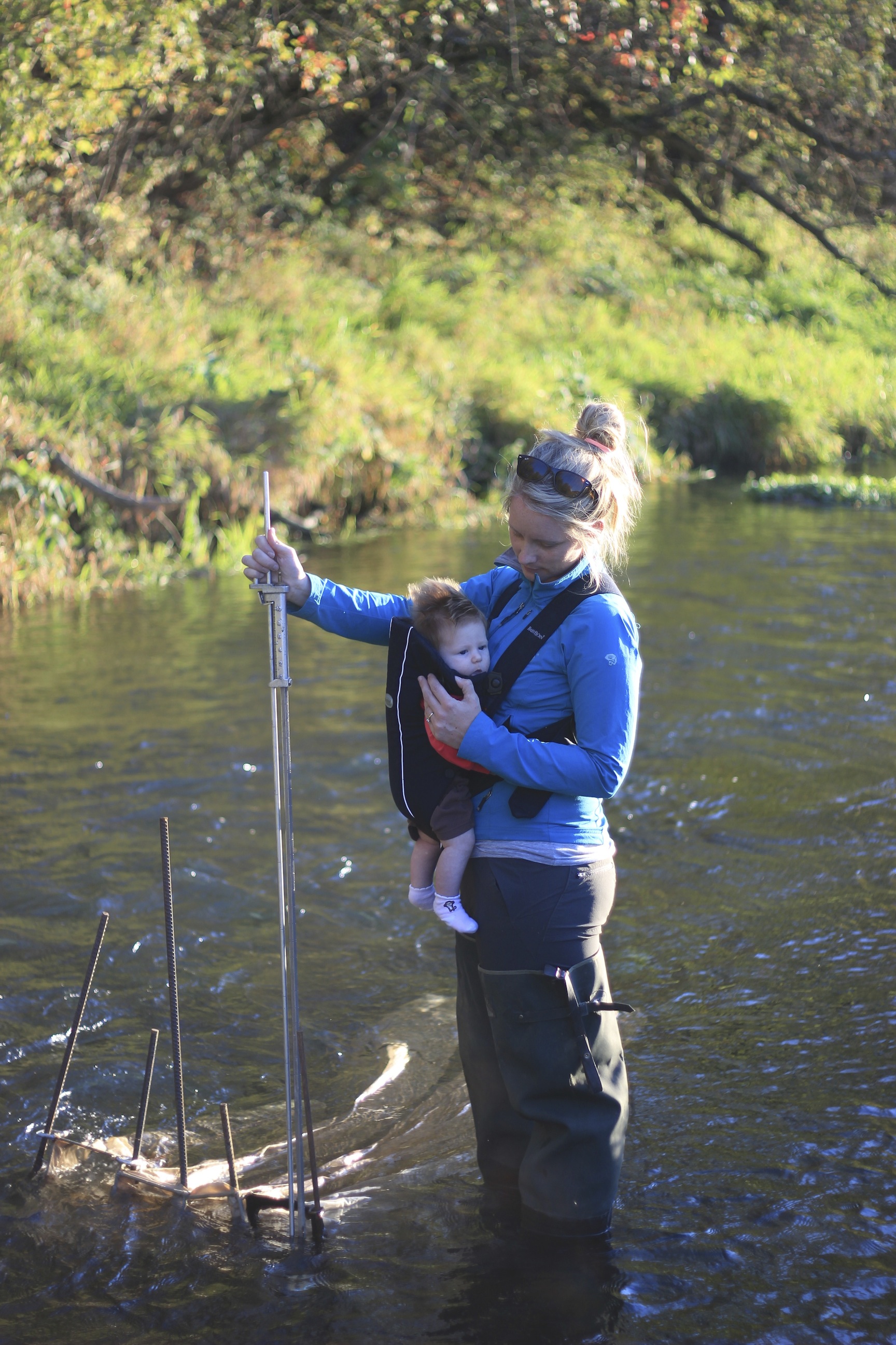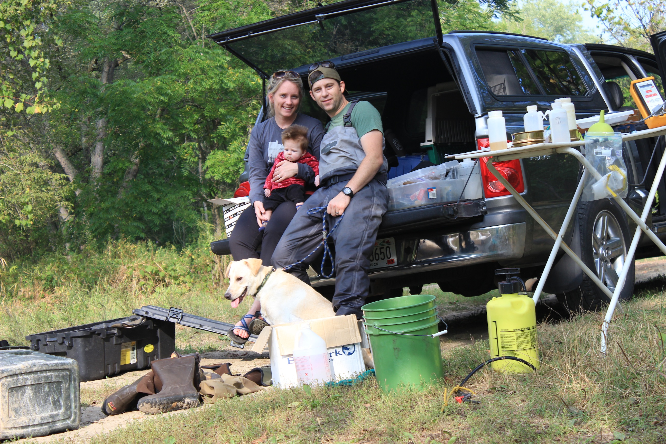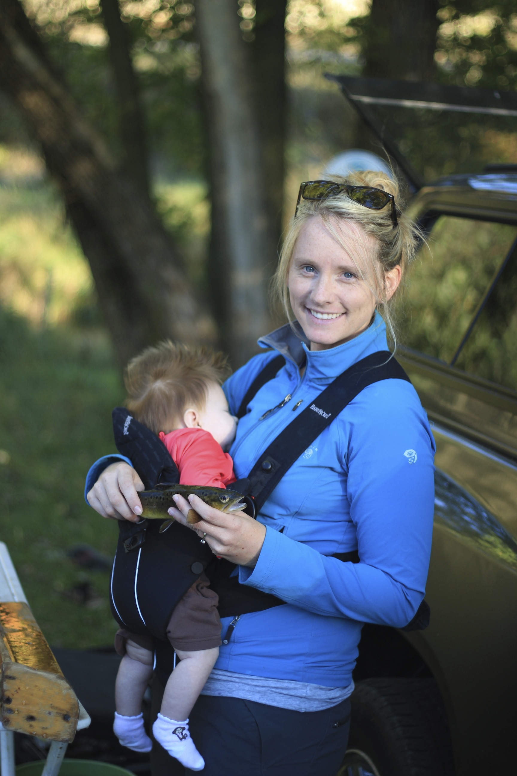 Fast-forward a couple dozen years. As I write this, I hold my beautiful baby girl in my arms. She’s sleeping soundly after a busy day out in the field. Along with my husband/doting daddy/most trusted field assistant and our much-loved lab named Lu, our afternoon was spent catching brown trout and collecting aquatic invertebrates.