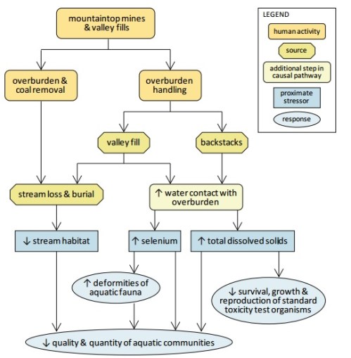 The report diagrams the principal observed and expected effects of mountaintop removal mining on aquatic ecosystems.
