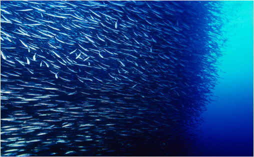 Their lives depend on it. Prey fish, such as sardines, anchovies, and menhaden, school for “safety in numbers.” It is more difficult for a predator to identify an individual amongst a group than on its own.