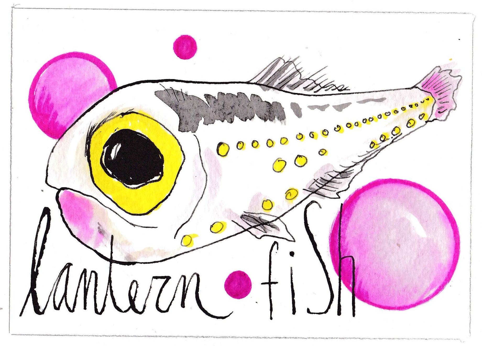 Lanternfishes are a family of deep-sea fishes found across the globe. In fact, deep-sea trawl surveys indicate that this single family comprises as much as 65% of the fish biomass in the deep sea! Aptly named lanternfishes, all but one species in the family have photophores along their lateral and ventral sides in species-specific patterns. It is likely that these patterns are used to signal to potential mates. Some lanternfishes have very bright photophores near the base of their tails which are also believed to disorient predators with a blinding flash as the lanternfishes swim away to safety.