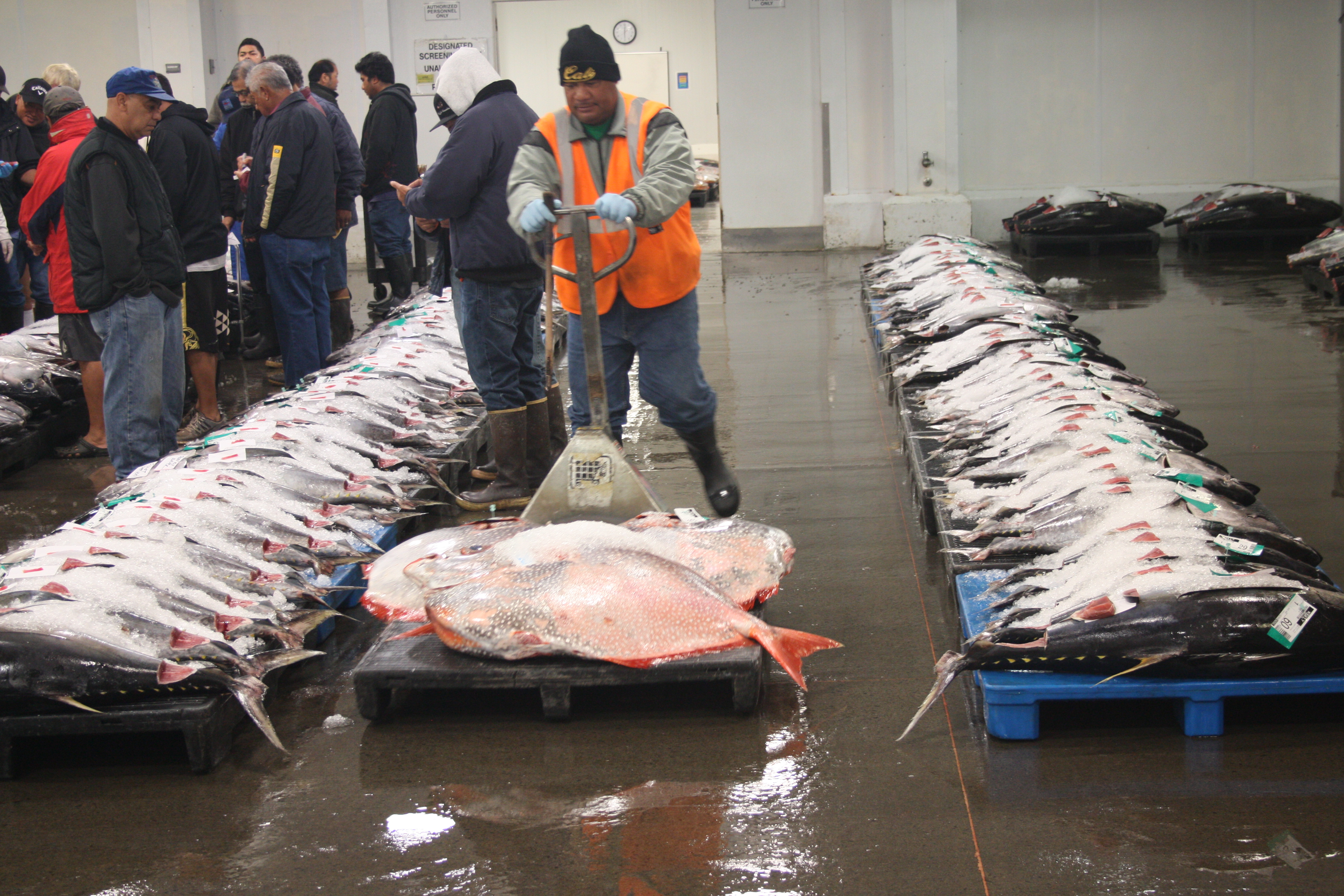 Here is a video of some boat workers offloading tuna.