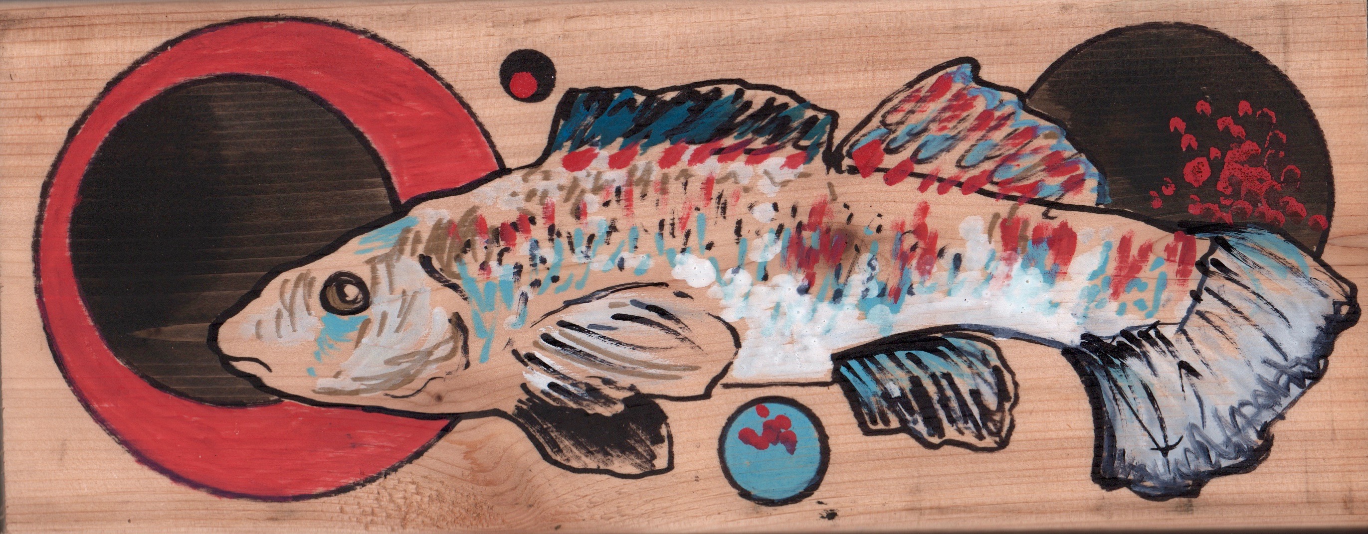 This week, our artist-in-residence, Hannah Dean, gives her take on a few of my favorite examples of freshwater fish that put on showy breeding colors–painted on wood…because paintings on wood are awesome.