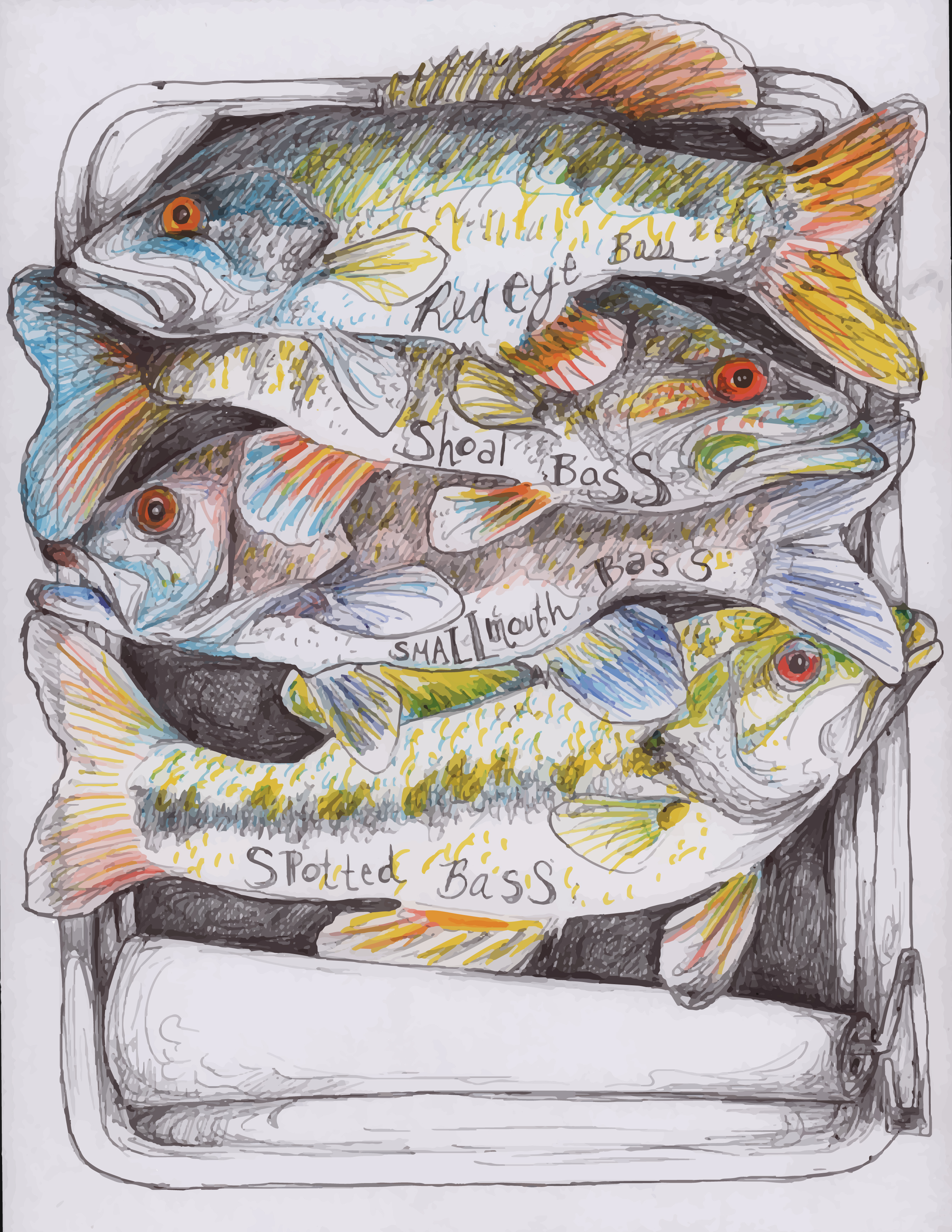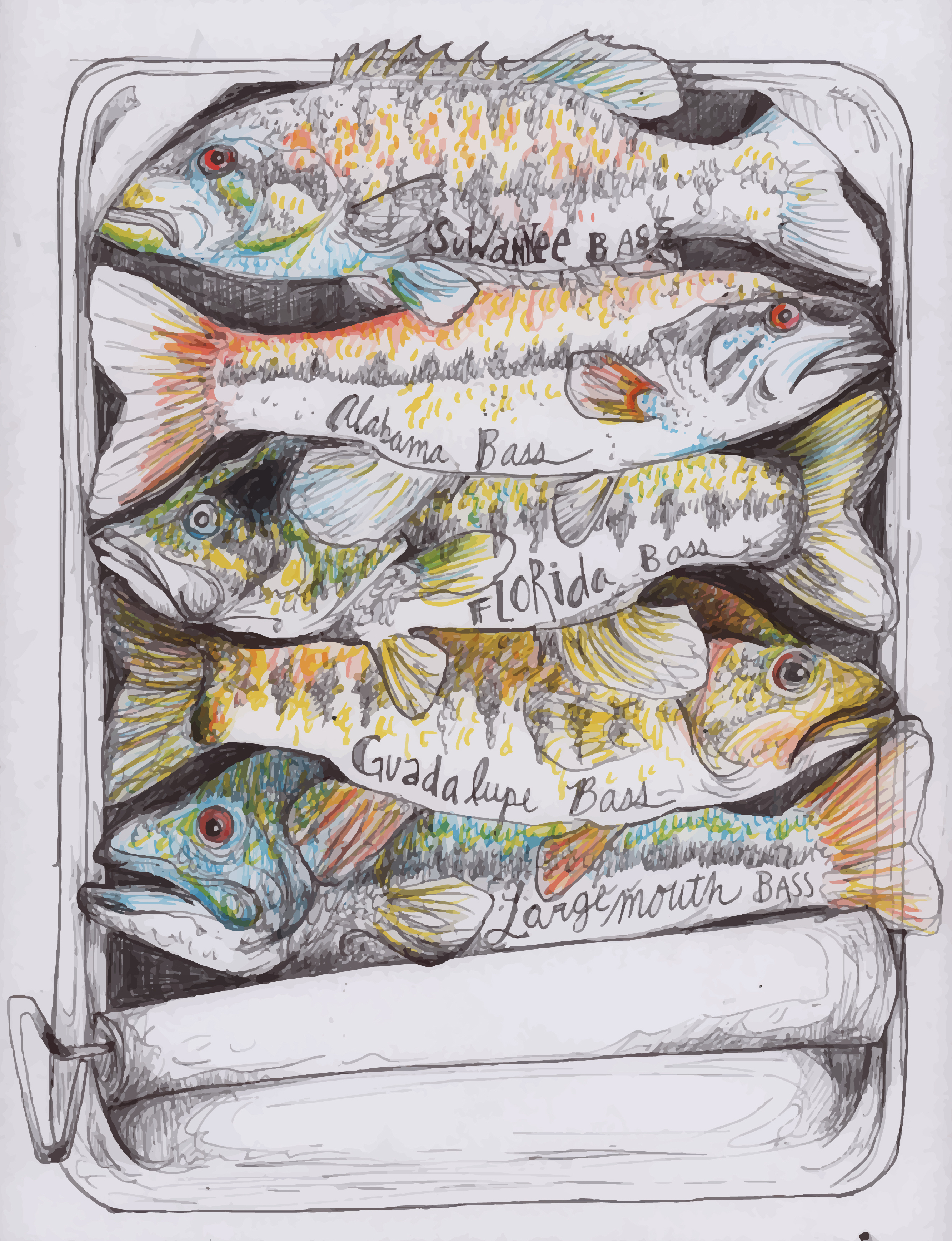 Tins o’ Micropterus. By The Fisheries Blog Artist, Hannah Dean.