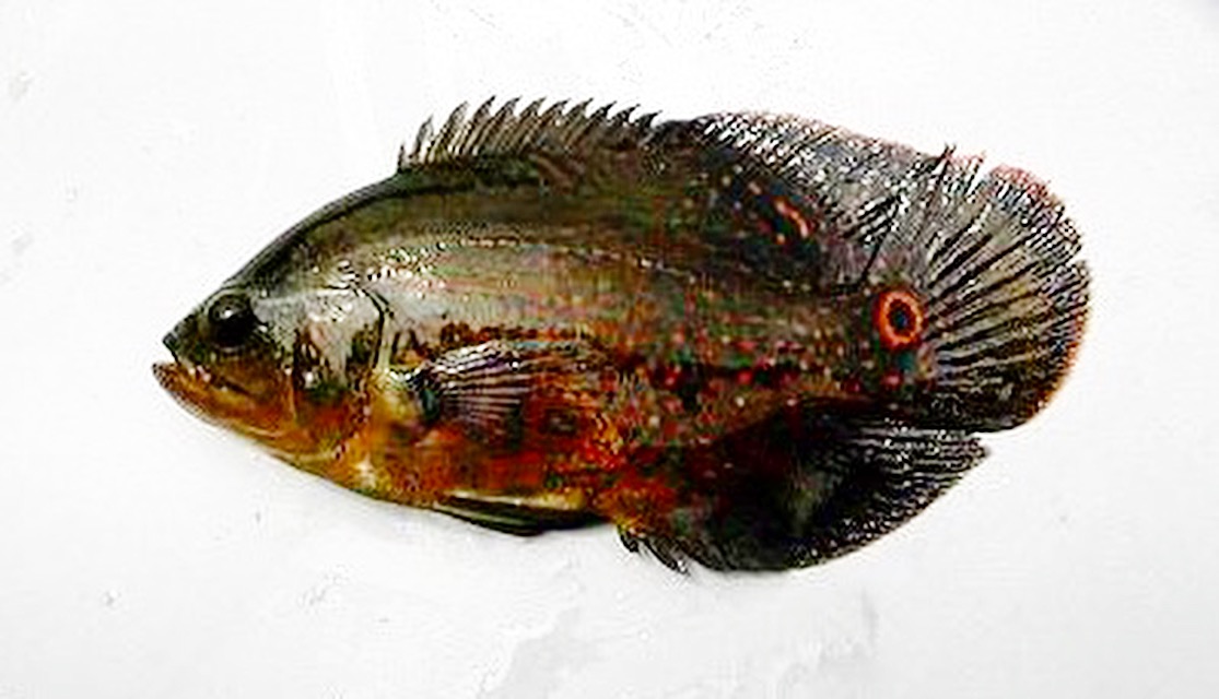 Oscar (Astronotus ocellatus) caught behind shopping center near Miami, Florida