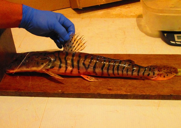 Jaguar Cichlid (Parachromis managuensis) caught in a canal near Miami, Florida