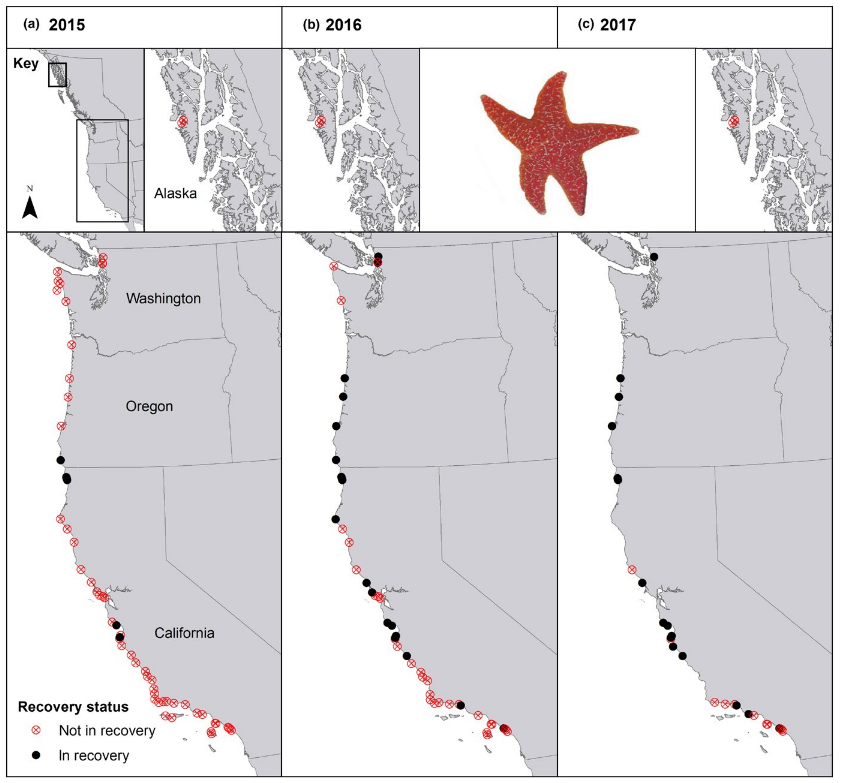 Miner CM, Burnaford JL, Ambrose RF, Antrim L, Bohlmann H, Blanchette CA, et al. 2018. Large-scale impacts of sea star wasting disease (SSWD) on intertidal sea stars and implications for recovery. PLoS ONE 13(3): e0192870. https://doi.org/10.1371/journal.pone.0192870.
