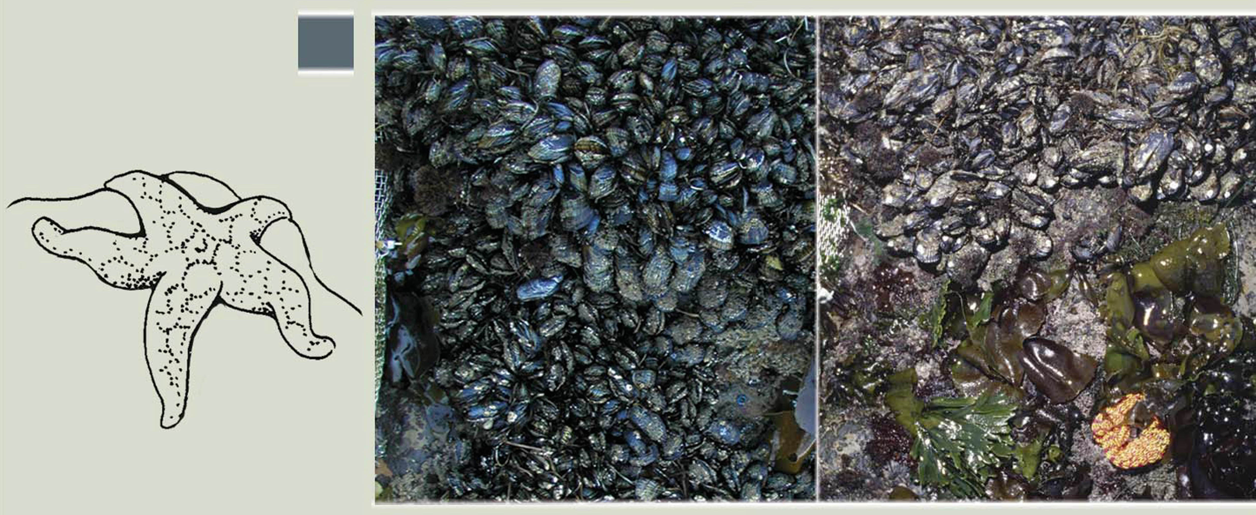The most well-known keystone sea star is the purple or orchre sea star. Scientists discovered that removing the purple sea star from their coastal intertidal habitat allows mussel populations to quickly cover these rocky habitats; the mussels in turn prevent other species from establishing themselves. Similarly, sea stars that prey primarily on sea urchins keep those populations from growing out-of-control and mowing down giant kelp forests that provide food and refuge to numerous aquatic species. Thus, a population of sea stars has important indirect impacts on many species throughout an ecosystem. Also because of their importance, many scientists quickly became alarmed when these top predators began disappearing a few year ago.