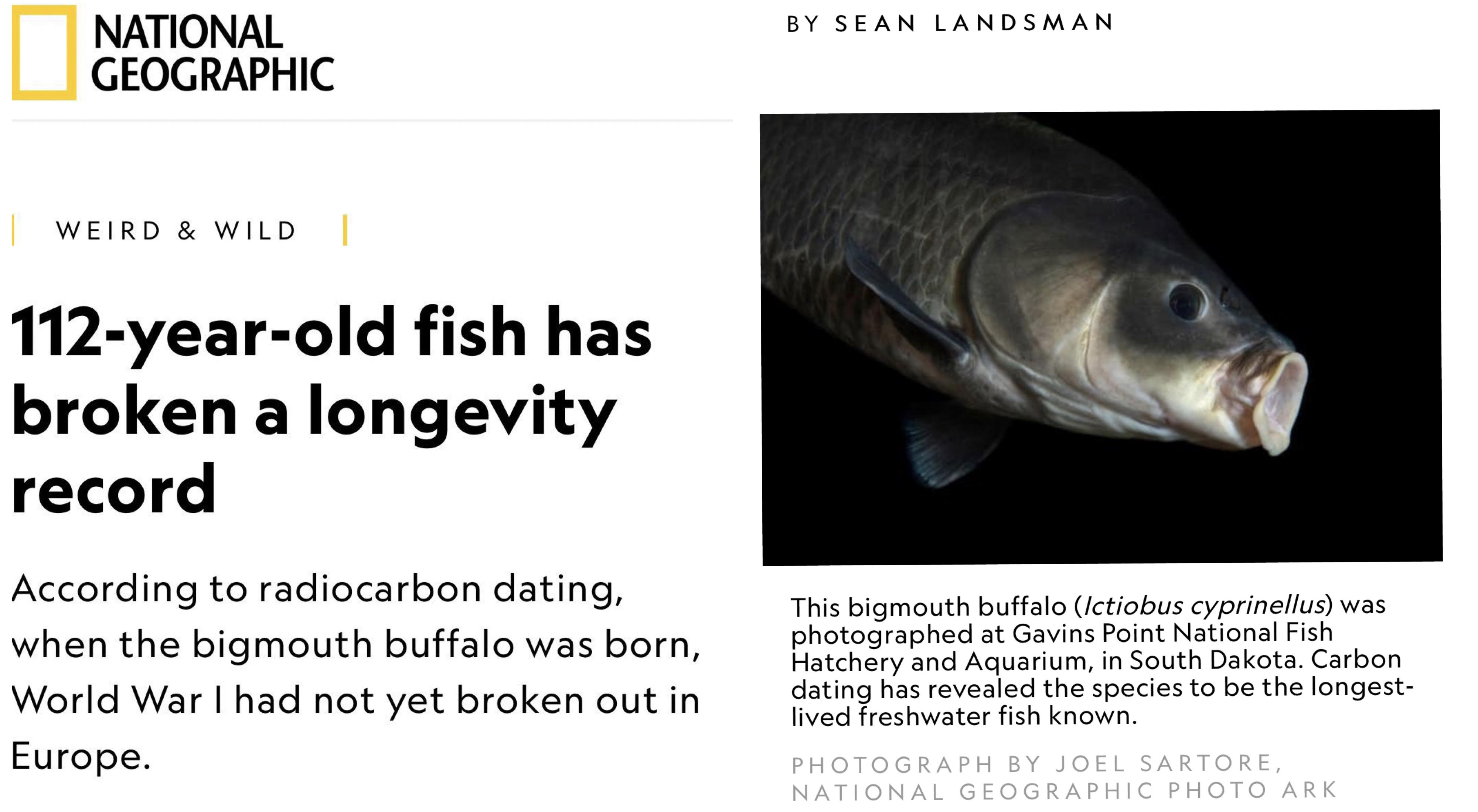 So what’s the cool new finding? It’s been discovered that Bigmouth Buffalo can live for over 110 years, making it the oldest freshwater teleost fish on record! Some populations in Minnesota haven’t been able to successfully reproduce since dam construction in the 1930’s that likely cut off passage to their spawning grounds. More research is needed on these fish, and hopefully the new longevity record will help improve the Bigmouth Buffalo’s reputation and garner more conservation support (there are no harvest regulations for the species in all but two of the states where it’s found).