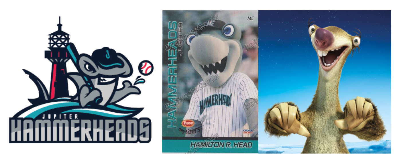4. The Jupiter Hammerheads minor league baseball mascot, Hamilton R. Head (Ham R. Head for short) probably has the best name of all the fish mascots, but if you ever saw him, you might think he looks more like Sid the sloth from the Ice Age movies than a hammerhead shark. Nevertheless Hammy makes the ballot, and might be able to help raise awareness about the critically endangered scalloped hammerhead.