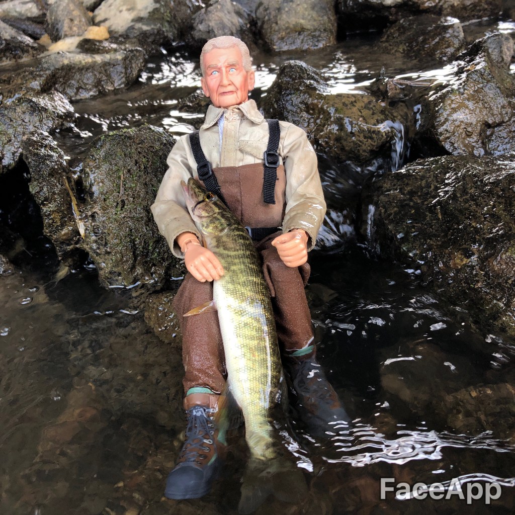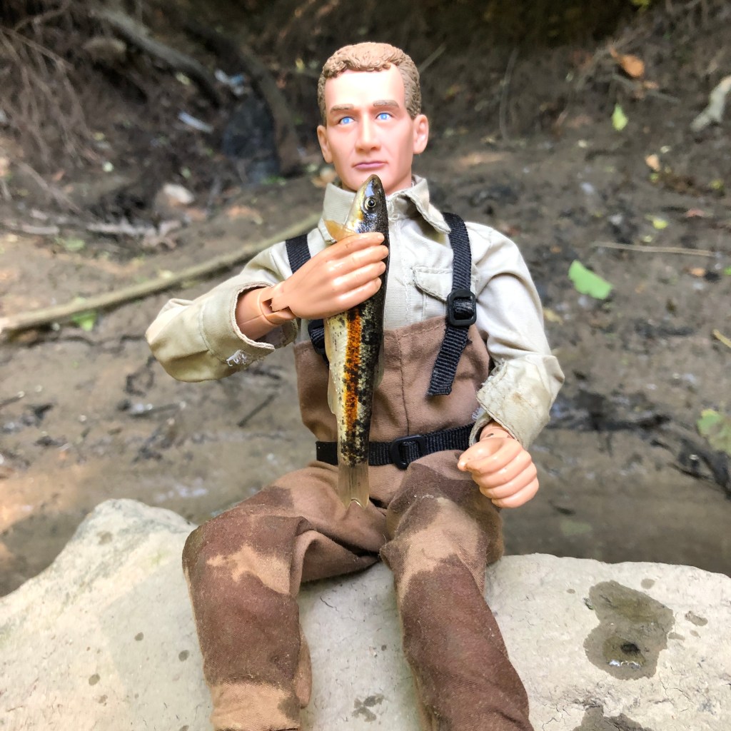 Believe it or not, it’s harder than you think to find an action figure with waders. After a few unsuccessful google searches, eBay saved the day with a “12” Outdoor Sportsman Action Figure by Ertl Collectibles”. Lucky for us, the seller had 2 available and we couldn’t have bought them any quicker.