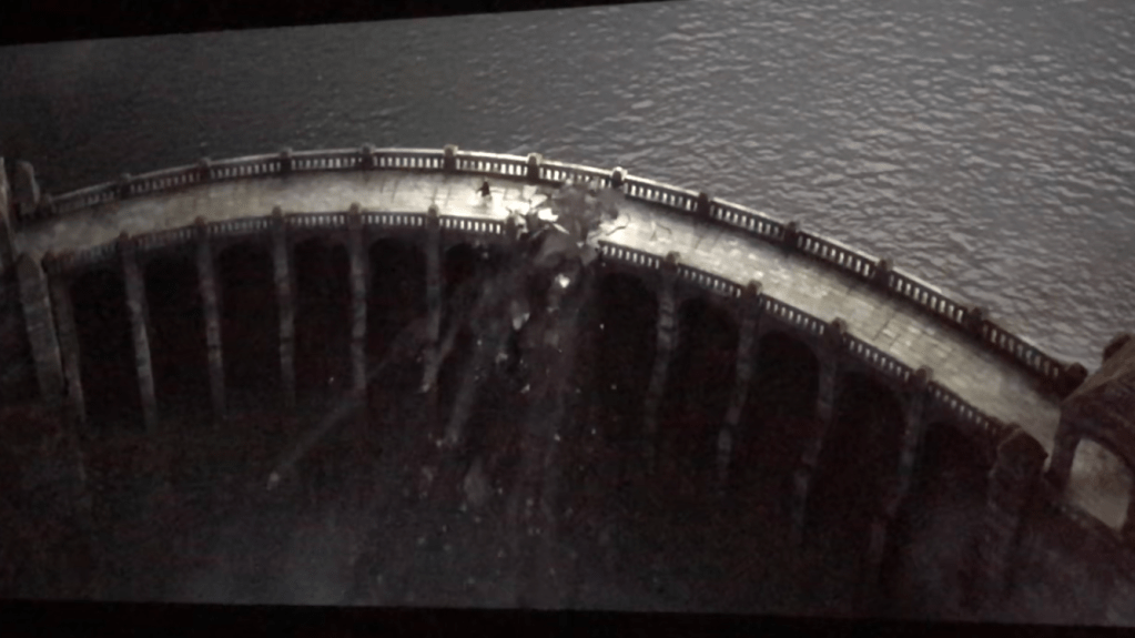 After understanding the impact on the environment of the now useless dam, Princess Anna uses ingenuity (and a bit of help from magical rock giants) to destroy the dam.