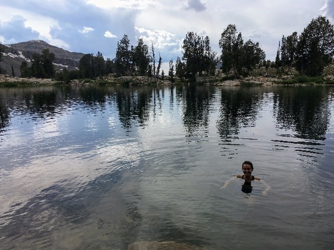 In July, I switched crews and conducted bull trout abundance surveys using electrofishing equipment in a tributary of the Snake River. We also suppressed invasive eastern brook trout, which felt strange given the efforts to conserve them in my home state of North Carolina. Brook trout can breed with bull trout and produce hybrid offspring, a result that is detrimental to native bull trout populations. During the week we camped out near our sites, and I was introduced to the arctic phenomenon known as a creek shower. I will never again complain about a pool being too cold after bathing in a snowmelt stream.