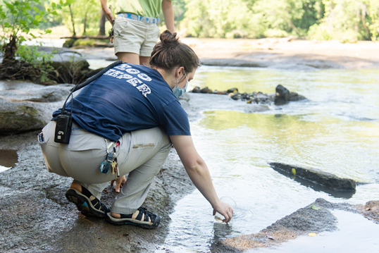 The culmination of months of hard work. Each community member received a cup of trout to place in the Saluda River. Students across the state livestreamed the event with us so they could connect from many miles away. The fingerling rainbow trout are stocked in the Lower Saluda River in downtown Columbia, SC. They will join other reproducing trout in one of the southernmost reproducing trout fisheries. Photos Courtesy of T. Main, SCDNR