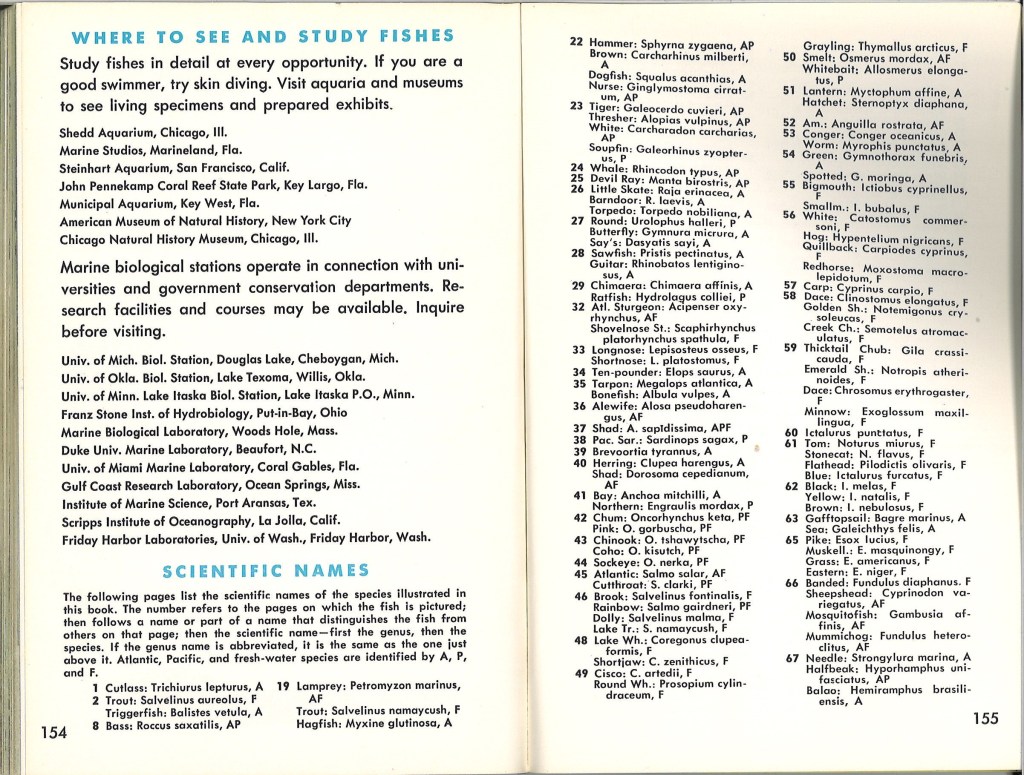 The last page of text, right before the glossary, describes “Where to see and study fishes.”  On the short list of places is the University of Miami Marine Laboratory, Coral Gables, Florida.  This is the exact University I was applying to in 1996 that prompted the writing of my college application essay that led me to recognize the importance of this book in my journey to become a fish scientist.