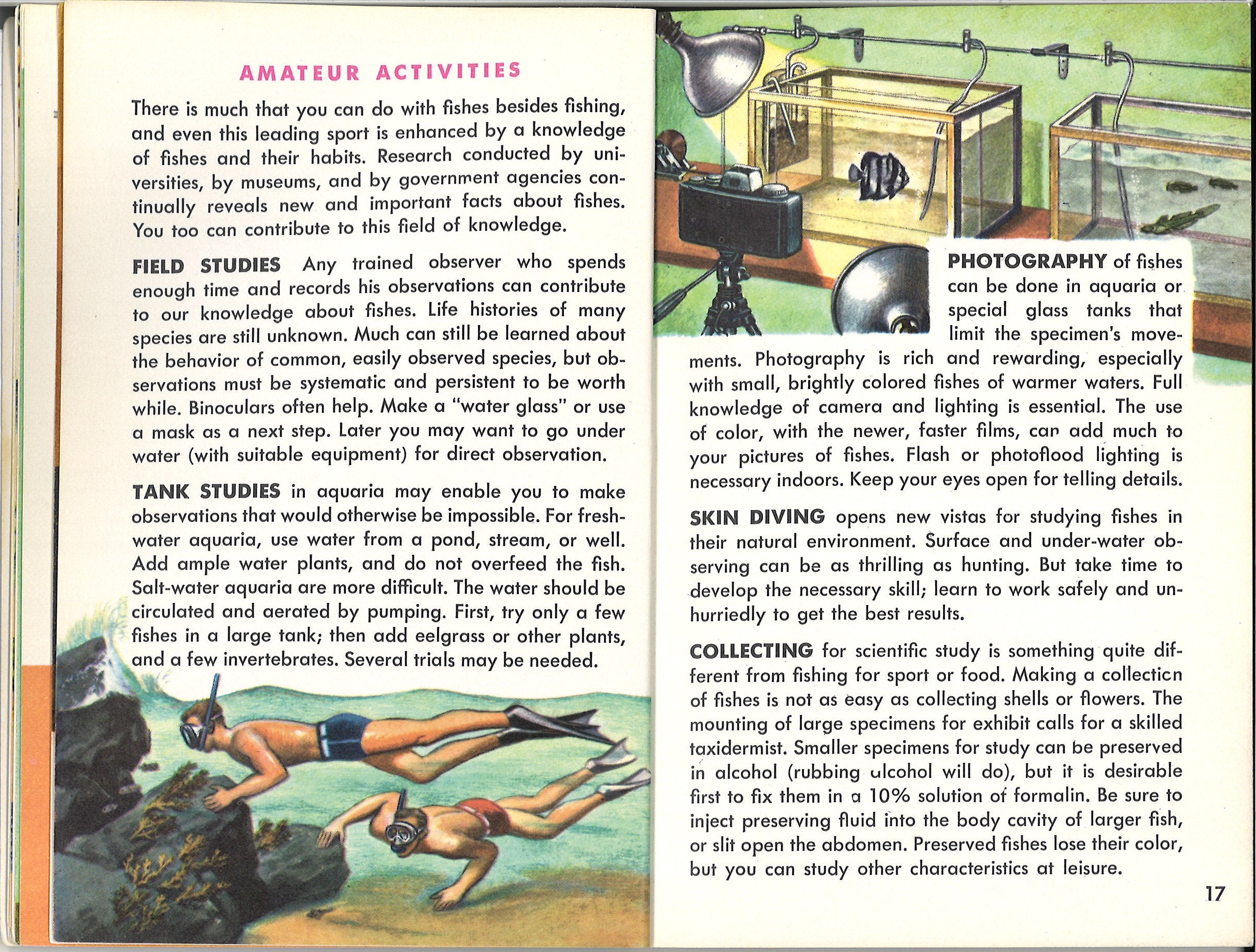 “Special studies of fishes bring you to the border of scientific research.  A good deal has been and can be done by amateurs.  First, use this book to learn to identify common fishes.  Then make a more systematic study of the fishes of your region.  Begin to observe how fishes live, and by that time you will discover there is much of interest and importance which is not yet in books.  From this to research is but a short step.”