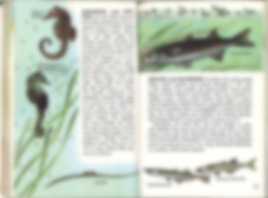 The blurry image that stuck with me the most between 1996 and 2021…the one that would disappear when I tried bringing it into focus for any clue to help me find this book… was the illustration of the pipefish.  I could see it at the bottom left-hand side of the page somewhere in the middle of the book.