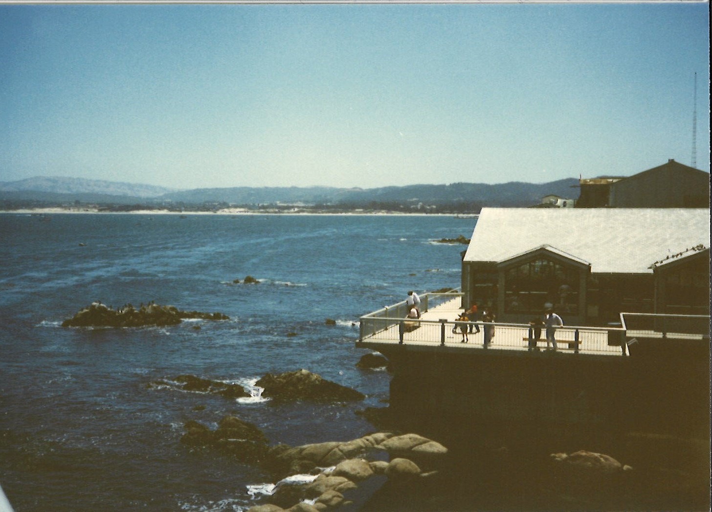 The Monterey Bay Aquarium in 1986 overhanging Monterey Bay and the Pacific Ocean.
