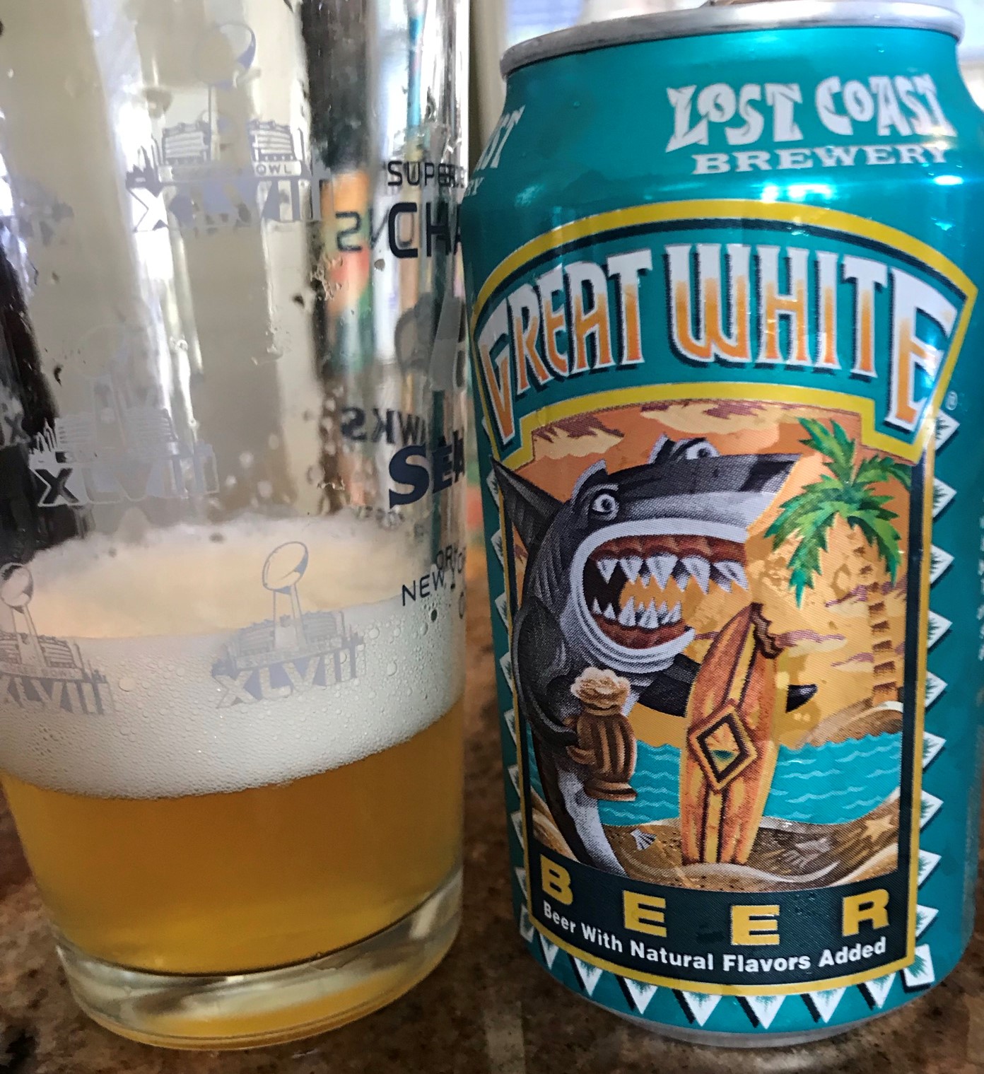 Lost Coast Brewery Great White Beer 4.8% ABV; IBU 15; Eureka, California; “Beer with natural flavors added”