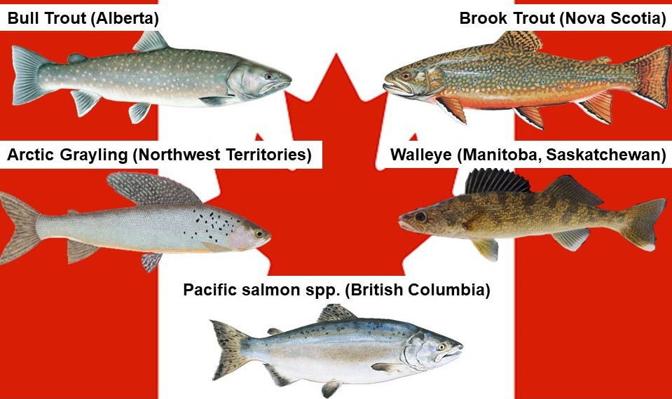 Salmonids also dominate officially-recognized fish in The Great White North, where six of the 13 provinces and territories have an officially-recognized fish (or fishes, in the case of British Columbia which recognizes “Pacific salmon” of the genus Oncorhynchus).