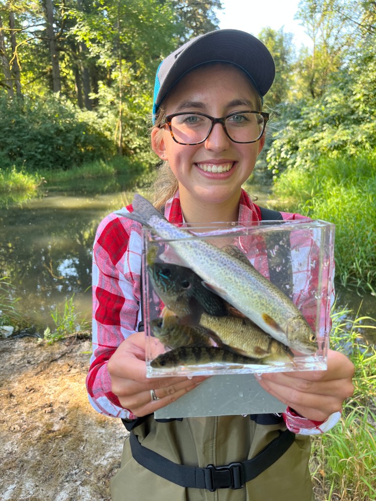 Specifically, I helped at the Columbia Springs Hatchery by sampling the rainbow trout populations, cleaning the round ponds, and feeding the fish. I also participated in leading the summer nature camp, helped with education outreach, and contributed to the social media feeds.