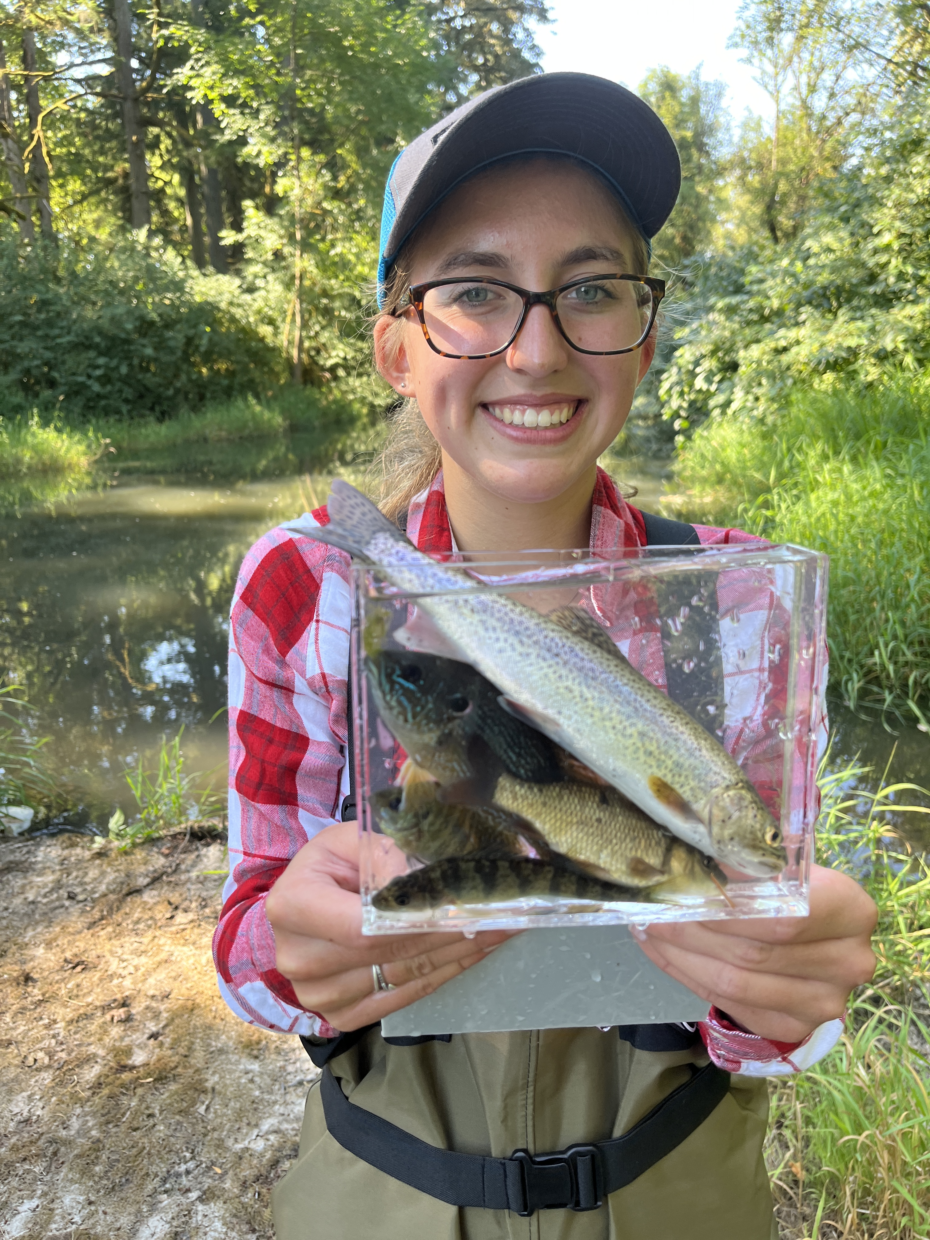 Specifically, I helped at the Columbia Springs Hatchery by sampling the rainbow trout populations, cleaning the round ponds, and feeding the fish. I also participated in leading the summer nature camp, helped with education outreach, and contributed to the social media feeds.