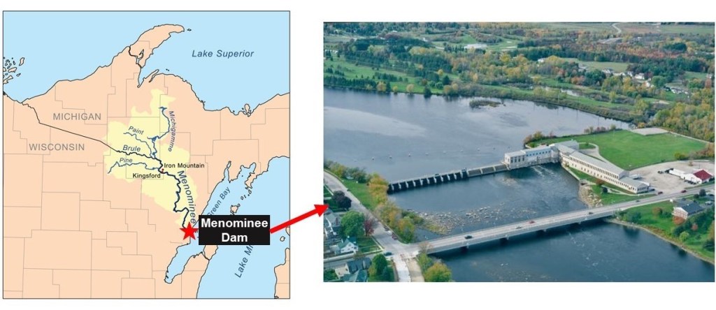 The Menominee River is a tributary to Lake Michigan’s Green Bay that supports one of the largest remaining populations of Lake Sturgeon in the Great Lakes. Historically, fish could travel up the river for nearly 130 river kilometers (rkm), but now encounter the Menominee Dam only 4 rkm upstream from Green Bay. As a result, over 90% of what is considered high-quality sturgeon spawning habitat is located upstream of the dam and therefore unavailable to fish (Daugherty et al. 2009). The lack of access to habitat has likely contributed to sturgeon population decline (Coscarelli et al. 2011) and is considered an impediment to the species’ recovery.