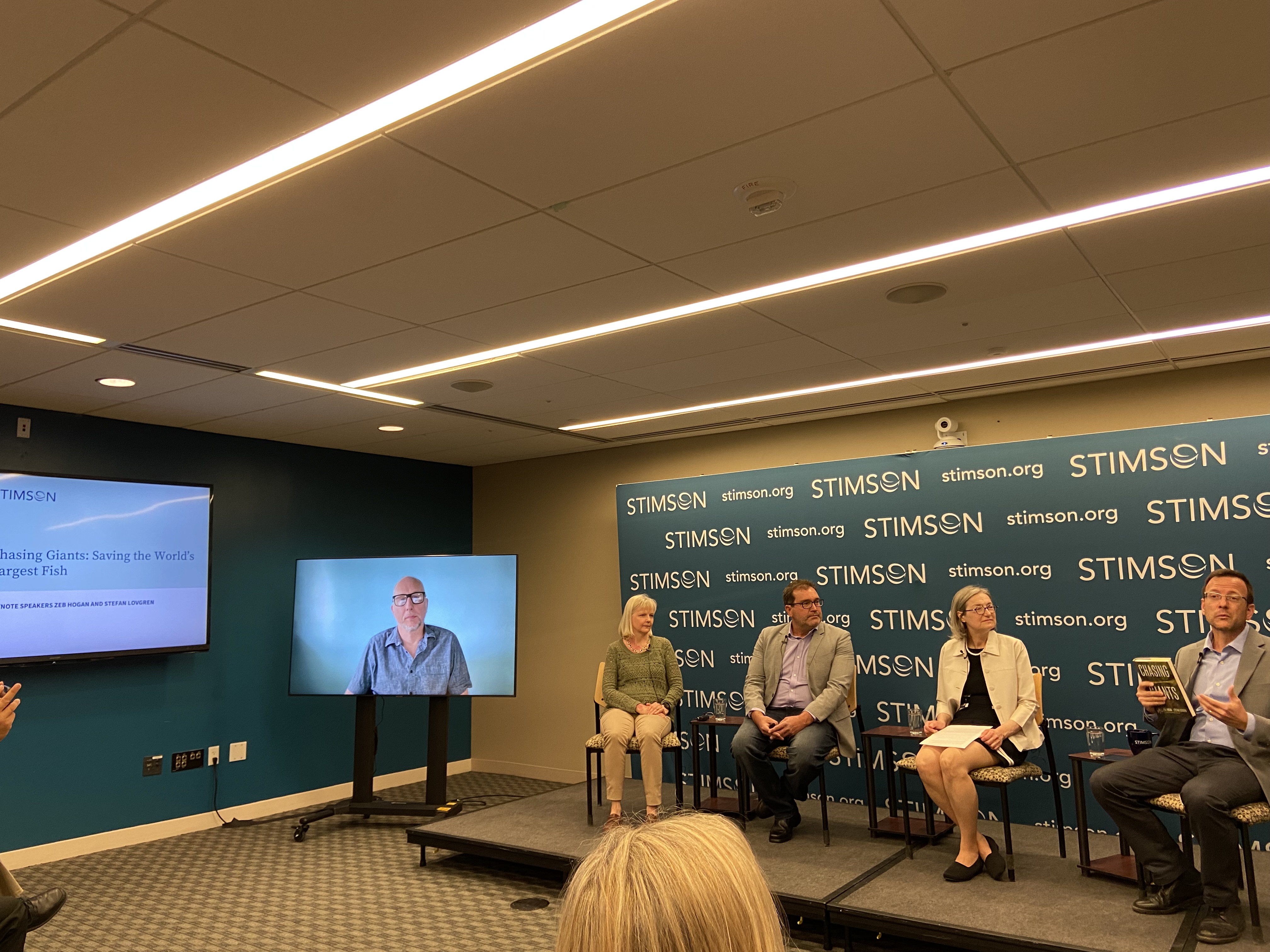 Officially released April 25th, I was privileged to attend a pre-launch book event for Chasing Giants: In Search of the World’s Largest Freshwater Fish by Zeb Hogan (University of Nevada – Reno and host of National Geographic’s Monster Fish) and Stefan Lovgren (award-winning journalist and filmmaker). The event was hosted by the Stimson Center on April 12th and included a panel discussion with the authors, Mary Melnyk (USAID), and Michele Thieme (WWF), moderated by Brian Eyler (Stimson Center).